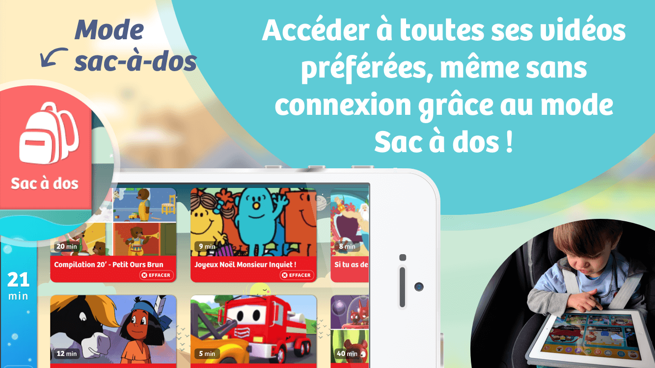 Kidjo, c'est avant tout des contenus de qualité présélectionnés par une psychologue pour enfant et adaptés à l'âge de chaque enfant. On y retrouve tous les dessins animés préférés des enfants, les meilleurs comptines pour les tout petits et des vidéos éducatives pour les plus grands.